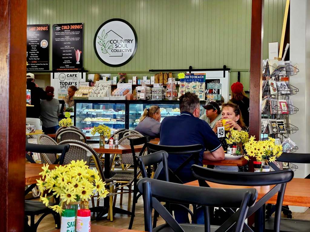 In Kalbar, Country Soul has a small range of vacuum-sealed local wurst near the the till and more staff than Loz’s had. Lunch arrived in a flash. My steak sandwich on gluten-free bread was delectable. It would’ve given the legendary Ivanhoe Sanga a run for Lionel’s money by my reckoning. The verdant-plant-festooned Lovetts’ Cafe across the main drag was also thumping.